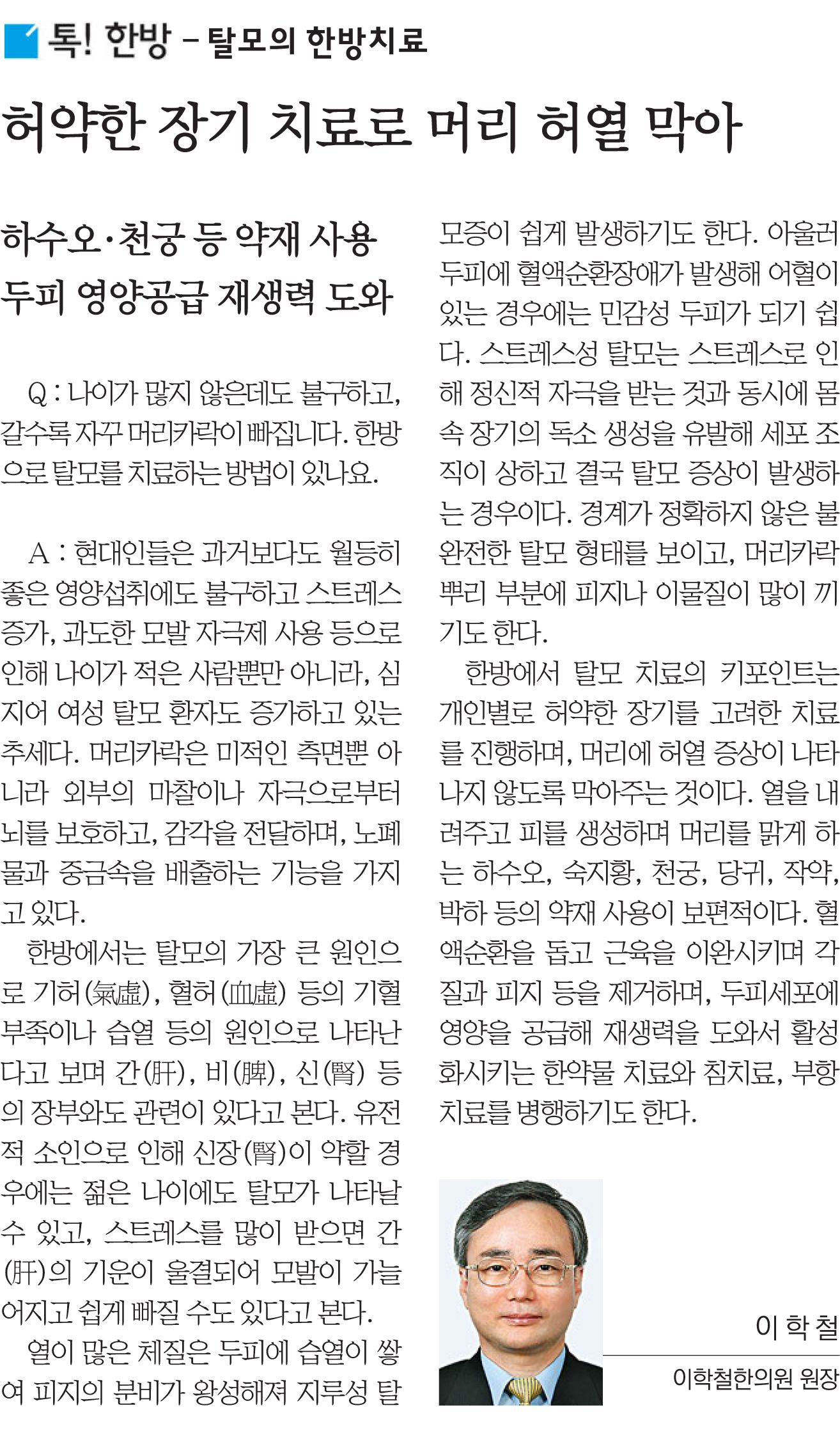 탈모의 한방치료-(부산일보; 2016.11.16)